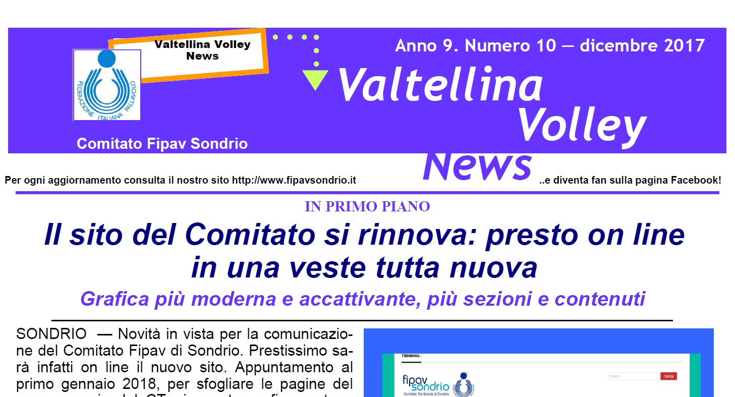 E’ stata pubblicata l’edizione di Dicembre del Valtellina Volley News. Potete consultarla nella versione sfogliabile oppure nell’apposita sezione accessibile dal menù è disponibile ufficialmente come versione pdf.